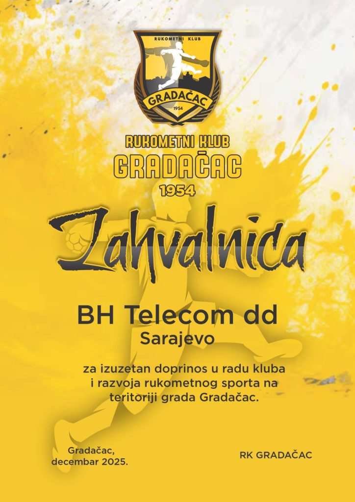 Na kraju još jedne izazovne i uspješne godine, Rukometni klub Gradačac izražava iskrenu zahvalnost BH Telecomu, našem dugogodišnjem partneru, na kontinuiranoj podršci i povjerenju.